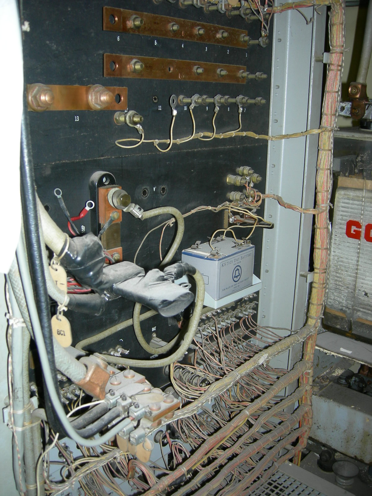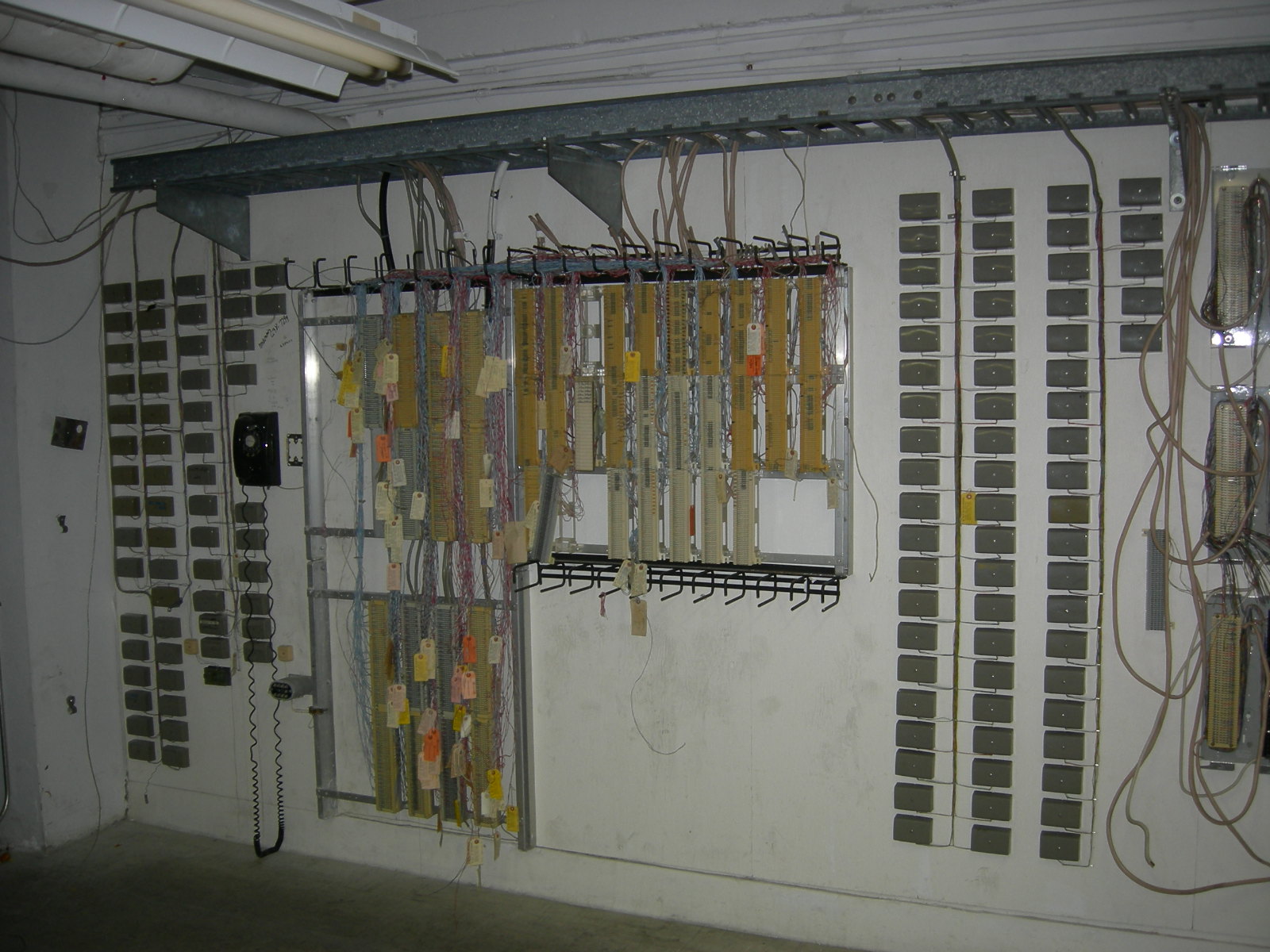 This is the 'main' telephone room for the building on the 7th floor. I'm guessing it was upgraded in the 1960s. There's an abandoned 48 VDC power system. Some of the batteries still have fluid in them.