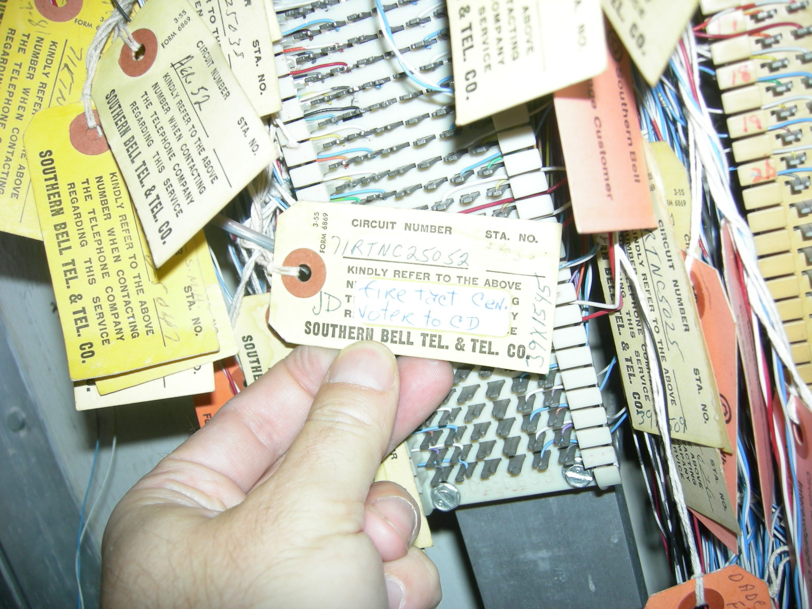 Old Southern Bell Telco Demarc. Tags indicate these were RTNC, analog, radio circuits. Many existing and old Fire Department radio sites are mentioned on the tags. This appears to have been a major comparator site for the Fire Department. There's a roof access opening, just large enough to climb out. But there's only a thin ledge to climb out to. And no rails or places to hang on to. I also took some blind shots from above me toward the peak. You can see white stains from where the famous turkey buzzards perch. Here's an old box of 660 watt tower light bulbs. They plan to restore the light at the top when some safety equipment has been installed. While LED tower lights would be much more efficient, I would like to see the old fashioned look of an old incandescent red light slowly blinking. More sings of old radio and telephone equipment on a higher floor. Views up toward the water tanks. Still in use for domestic water. There's another smaller one for the fire hose cabinets but it's not in use any more. Where an old A/C pump was located. The Court house was air-conditioned in 1957. Some original units are still in service.