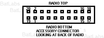 I'll assume you already have some sort of over-the-radio alerting system in place today. A couple tones or a burst of tones followed by the dispatcher's voice. If you have this, this design could be used to add another fire station or to replace an aging system at an existing station. It could also be a way to add another alert for a station, for example, in a detached exercise facility near the station, but too far to cable to. The brain to this system is the Motorola CDM1250 Radio. Built into its programming is a external alarm decoder. This is where the decoding happens. The radio stands by, constantly listening to your dispatch channel, even when the volume is turned down. When the right type of codes are heard, and they're exactly the correct frequency (pitch) the radio will close a contact (electronically flip a switch). You connect to this contact closure through a 16 pin connector at the back of the radio. If your department uses another type of radio, see if it can decode your department's type of alerting. If it can provide a short contact closure output when the tones are sent over the air, then this project could work for you. I've only done this with the Motorola CDM1250 radio. You, or your radio tech, will need to program the radio to decode the right set of tones and configure the radio to give this contact closure. The following screen shots from the Motorola radio programming software shows the steps for our radios. (click on the image to see it larger, then click it again to see full size). You'll likely need to trigger on two different sets of tones. One is specific for the station, the other is an all-call that would trigger all the stations on the channel, or all stations in a Battalion or Division. The radio can stand by for two different sets of tones. If you don't need to listen for an all-call in your application, you might be able to have two alerts, for example, one for the Suppression, one for the Rescue. The 'switch' inside the radio really isn't a switch. It's a tiny transistor. While it logically works like a switch, it has some important limitations. You can't use it to directly turn something on and off. It can only switch low current at low voltage. You'll damage the radio (and maybe yourself) if you try to use the radio to directly turn the lights on and off. You have to use an intermediary, a relay, to actually do the heavy lifting. This design uses 3 relays. Once the programming is done, you'll need to make connections to the radio via the accessory connector on the back. It's a 20 pin connector that you build by adding female pins as needed. If you want to test the radio before you continue, put a volt ohm meter across the contacts. It should show a short for 2 seconds after your dispatcher sends this station's tones. Thanks to Batlabs, a great Motorola radio resource, here's the layout of the connector. The connector you'll use has only 20 pins. When you plug it in, center it so pins 17-20 are showing.